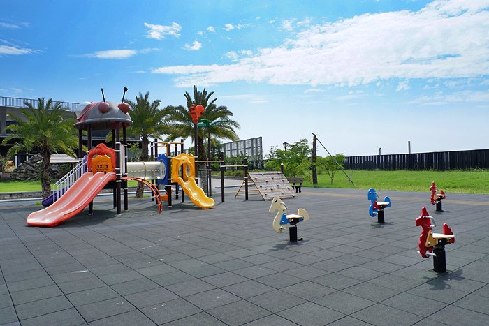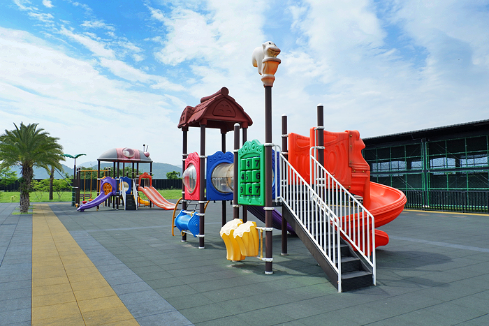 以上都還玩不夠的話,戶外還有溜滑梯遊戲場,有兩座溜滑梯遊戲組、搖搖馬、蹺蹺板與攀岩牆等遊具。