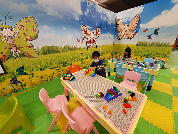 這區也設置了一些小桌椅,可以讓小朋友在桌上拼積木,動動頭腦。