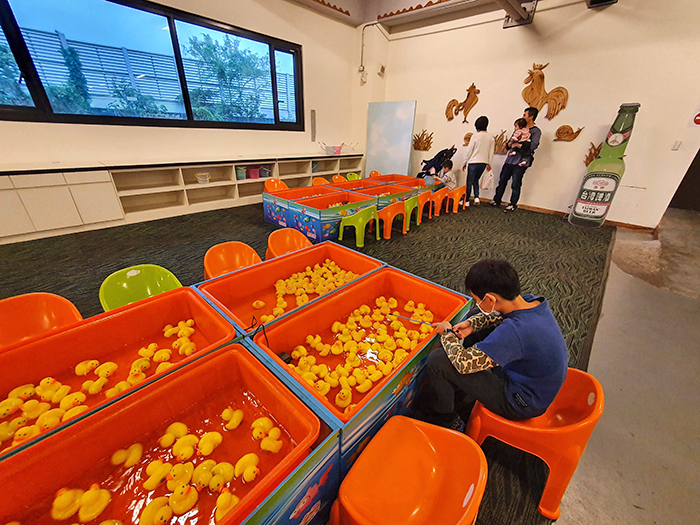 在入口處右側則有一座魚池,可以購買奶瓶(50元)或是投幣買魚飼料給小朋友餵魚。