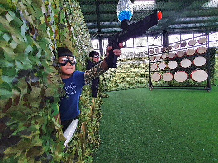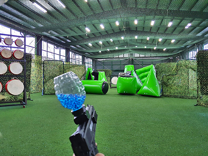 在另一區的室內空間裡是水彈槍射擊。水彈槍需另付費,需年滿8歲以上才可以玩,200元一人含500發子彈,門票可折50元。
