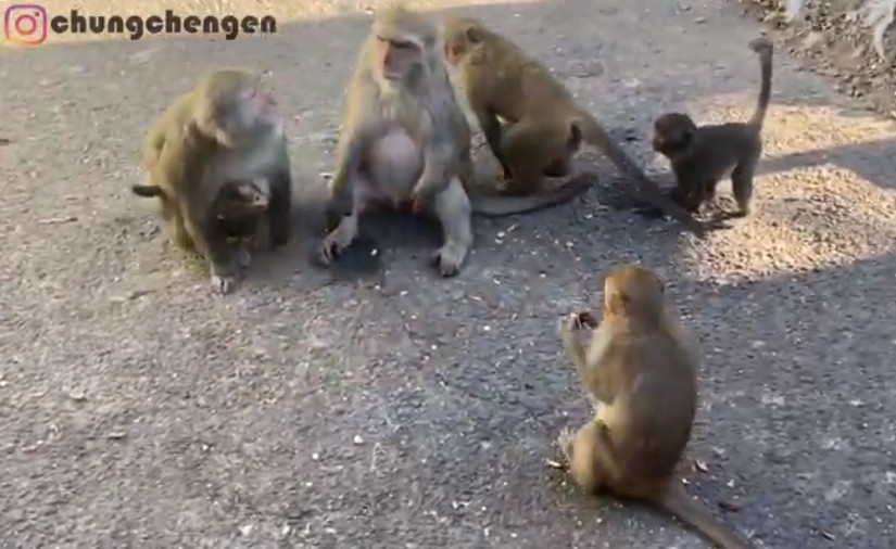 有時還能看到猴媽媽抱著猴寶寶前來討食,小寶寶窩在媽媽懷裡的模樣超萌的。