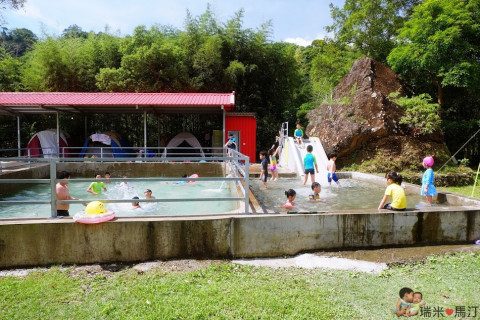 為了讓大家露的舒適,營地不多收,每帳都能保有足夠的空間,每到夏季時小朋友們幾乎集中在戲水池那,大小二座池子、清涼山泉水,還有一個磨石子滑水道,大家泡在水裡都捨不得離開了。