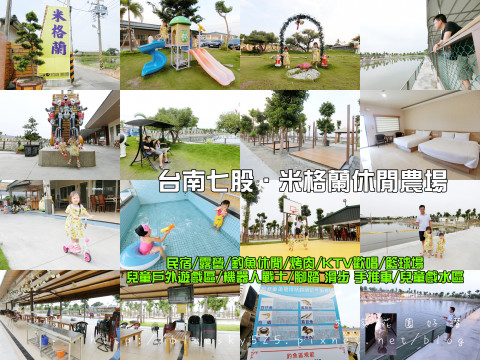 米格蘭休閒農莊位在台南七股鄉,這裡提供住宿、烤肉與釣魚,又長又寬的魚塭就在客房前面,走出門就可以開始釣魚,另外還有不少兒童遊憩設施,非常適合愛釣魚的爸爸,既可盡情釣魚,小朋友也有的玩。