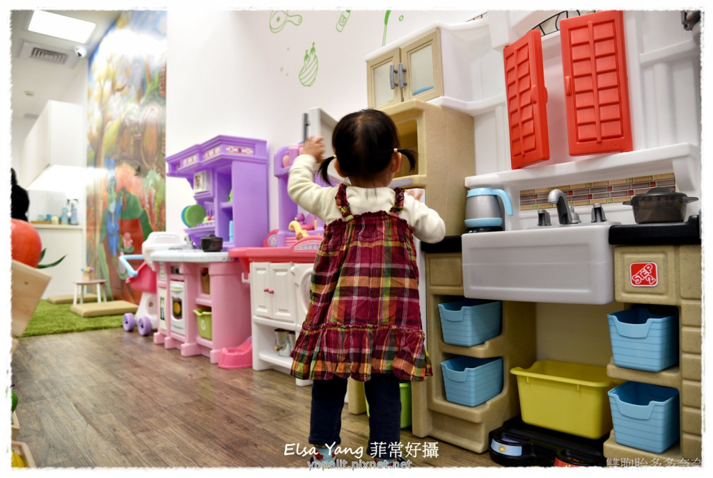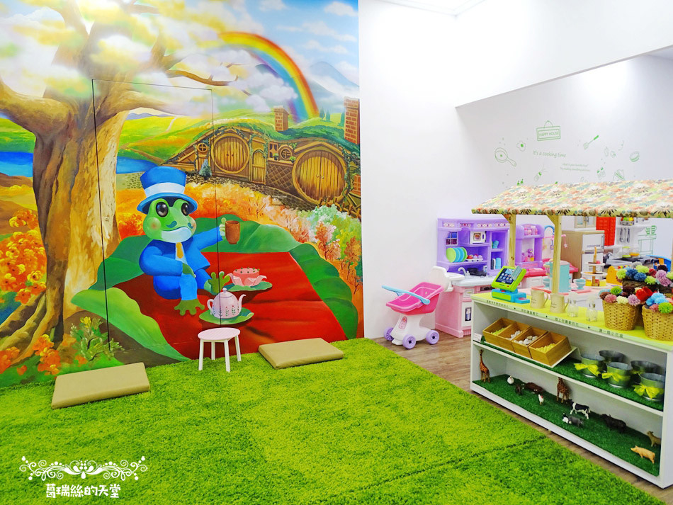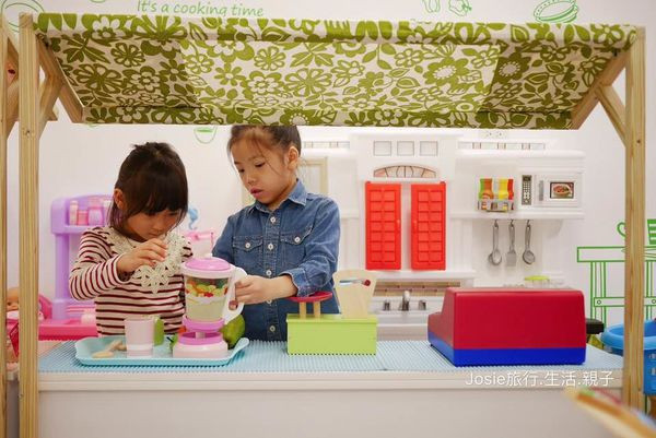 入口處有提供娃娃車與大型置物櫃,小朋友入內會拿到一張集章卡,完成集章可以兌換小禮物。店內清爽明亮,角落鋪設仿草皮柔軟地毯,是讓家長休息的地方,小朋友的玩具有溜滑梯、家家酒玩具店、繽紛花店、積木牆、幼兒賽車座還有多樣有趣的益智桌遊,不只小朋友,大人也可以一起玩。