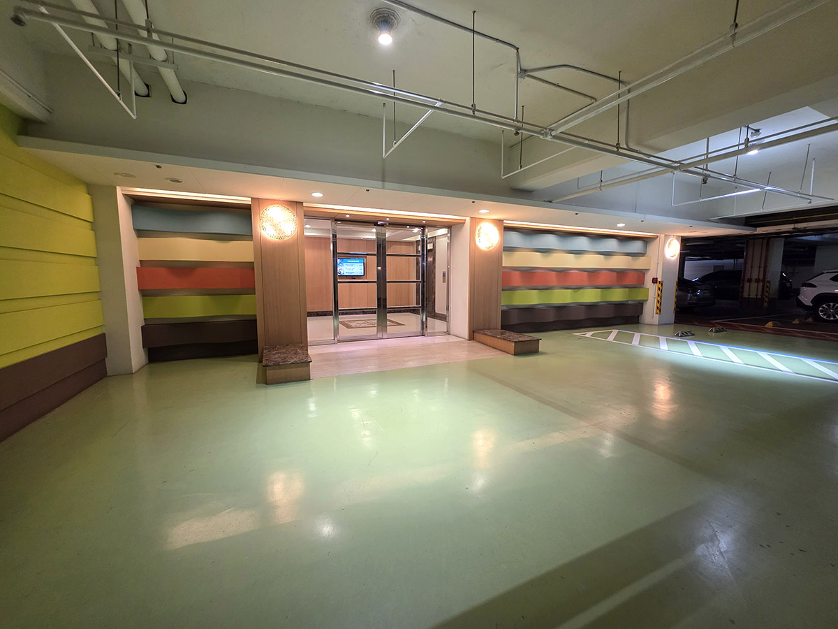 從園區入口開車約兩分鐘抵達渴望會館,來住宿的家庭可直接把車停在專屬的地下停車場。