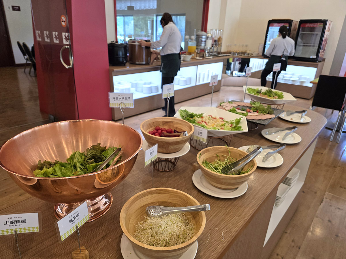 西式有生菜沙拉、麵包土司等、麥片玉米脆片、牛奶等,讓你吃飽飽。