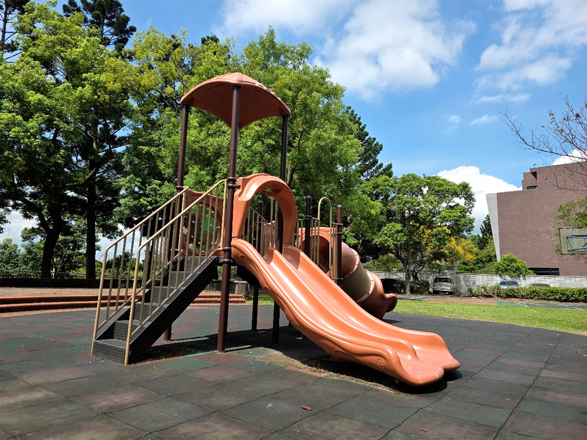 草地旁邊也有像公園的大型戶外溜滑梯可以玩。
