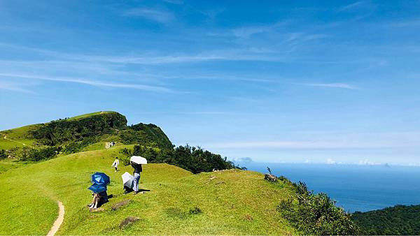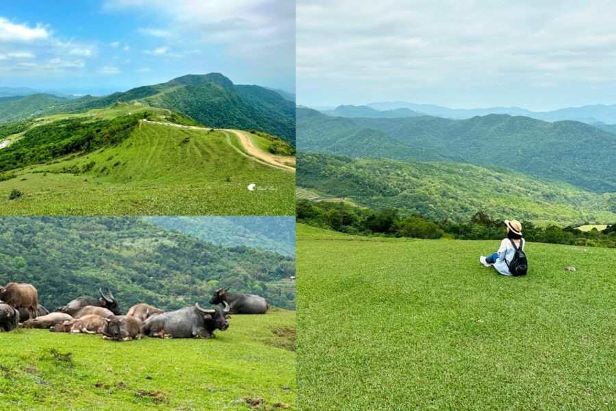 全長僅1.2公里,大概走個半個小時就可以上去了,是一個蠻輕鬆的步道,但階梯不少,上去後,一整片綠地,好像陽明山的擎天崗一樣,還有不少的牛隻在吃草。但這裡更讚的是可以望山看海,如同世外桃源一般。
