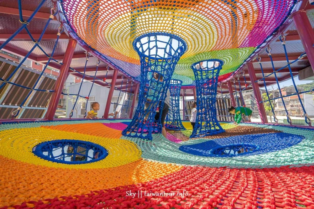 最特別是滑梯內是立體彩虹繩網攀,要溜滑梯前先來挑戰攀爬吧。