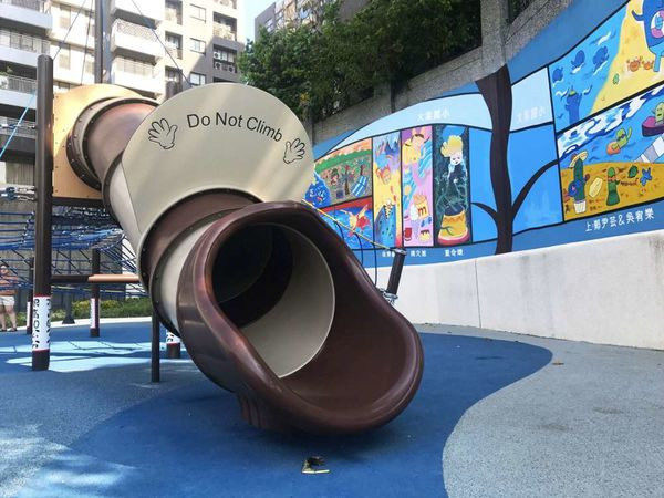 公園為狹長型狀,以水藍色為主色,打造出亞熱帶風情。兒童遊戲場在最內側,是一座以海盜船為主題的攀爬溜滑梯,小朋友想玩溜滑梯需先手腳併用,攀爬繩網而上,另設置瞭望台讓小朋友爬上去,仿佛小小海盜呢。