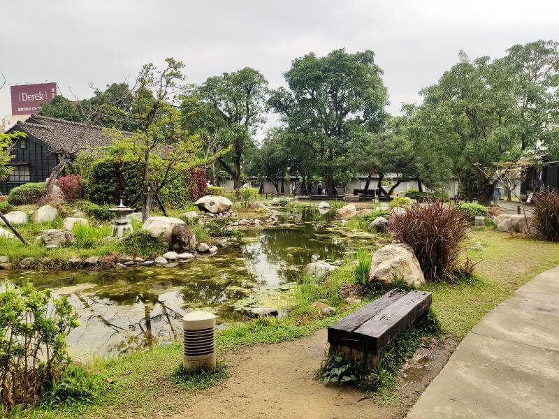 在園區內還有一個蓮花池,搭配著蔟立在旁邊的樹木、日式建築,感覺別有一番風味。