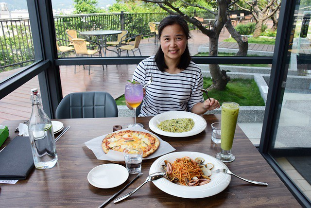用餐區有沙發與一般座位區,餐點有中式飯類、牛肉麵、小火鍋、義大利麵、燉飯、pizza、炸物小點、鬆餅等。帶小朋友來用餐,遊樂與小動物親近一次滿足,爸媽也輕鬆。