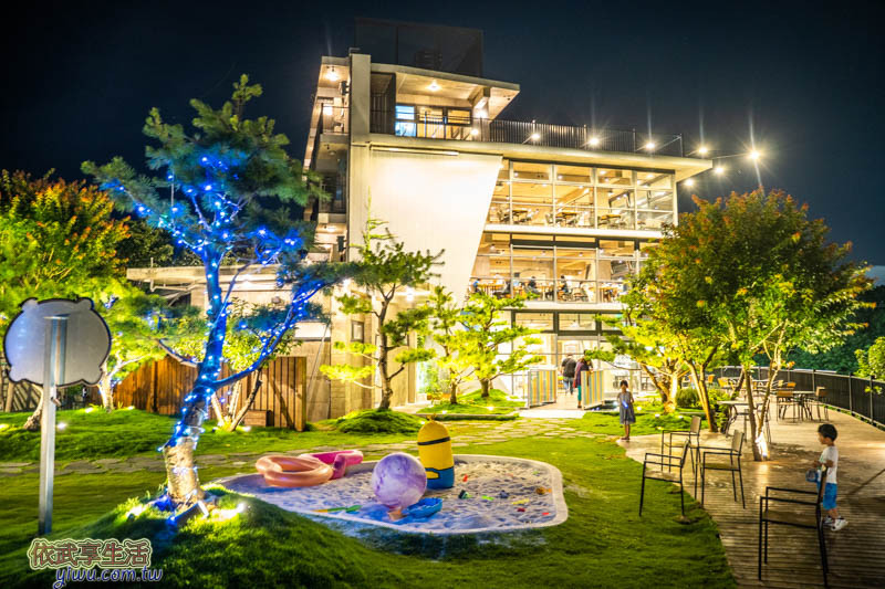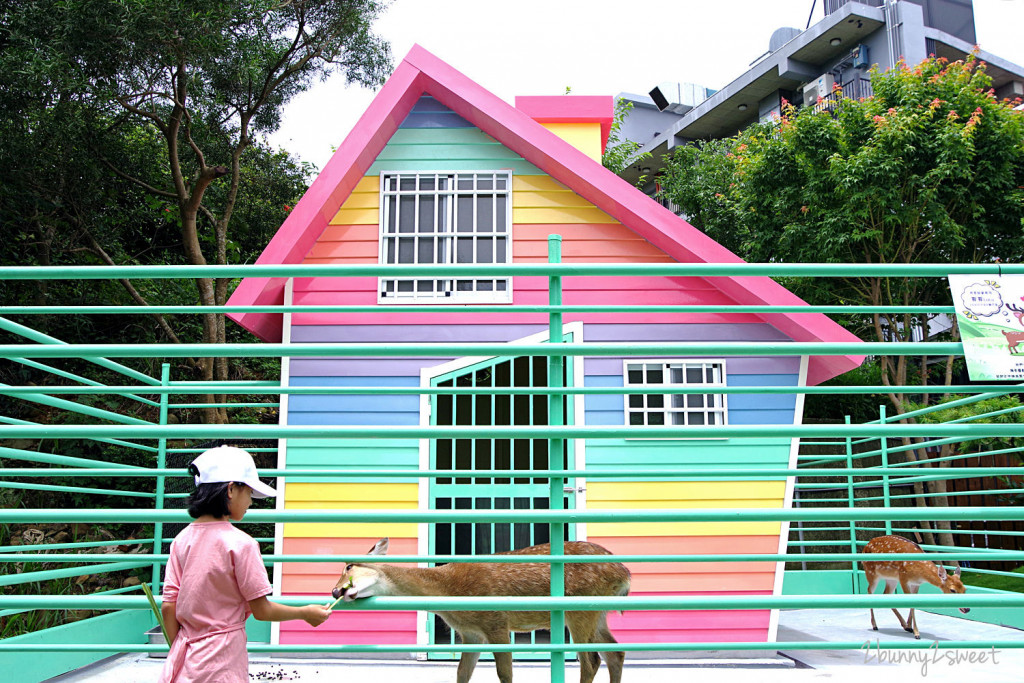 餐廳入口處有2隻漂亮的巴丹鸚鵡,戶外庭園有草皮空間與戲沙坑,很適合小朋友跑跳,另一側有羊舍與餵魚池,吃飽飯後就帶小朋友來遊玩看動物。主建物分為4層樓,每層都有用餐座位,2樓提供幼兒遊憩空間,有繪本、積木與小玩具;3樓是貓咪互動區,可愛的貓咪們就在這裡自由走動;4樓養有貴賓犬,毛茸茸溫馴的模樣很親人,每天13:00、15:00、17:00、19:00開放半小時互動時間。