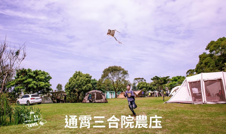 苗栗通霄三合院農庒為包區制露營地,分為6區,最少6帳可包區,全草皮營位,每區都規劃大空間,搭完帳後還有可以跑跳遊玩的草地,營主也會規劃活動帶領露友一起玩。