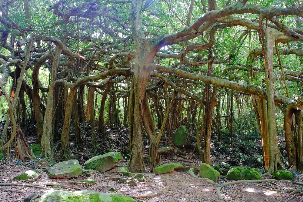 白榕樹吸收空氣中的水,會生成氣生根,當氣生根接觸地面會長成支柱根。白榕園裡的支樹根超過300餘根,這些支柱根僅由2株白榕樹生出來的,大自然的景觀真是讓人驚嘆。