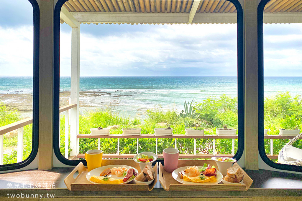 每間露營車前設有陽台與休閒桌椅,坐在這裡吹海風賞海景,非常愜意。