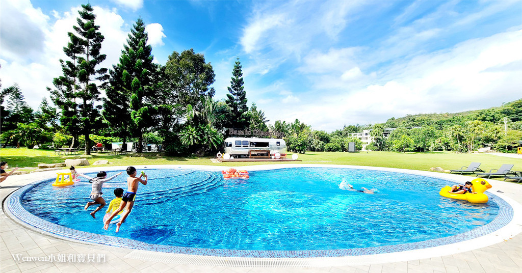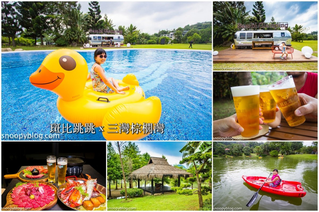 三灣棕櫚灣佔地寬廣,有漂亮的湖泊、大草皮,湖畔旁種植成排棕櫚樹,充滿南洋渡假風情。全新的斑比跳跳打造更舒適的露營車,車內配備冷暖空調、獨立衛浴與完善的備品,床有1張雙人床及上下舖單人床,適合2大2小入住,裡面也打造的很有質感。