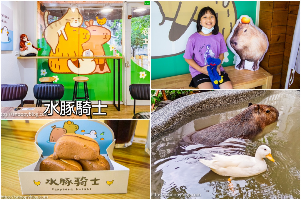 水豚騎士位在新北土城,離捷運土城站約7分鐘路程,2022年4月開始營業,這是間以水豚為主題的餐廳,可愛的動彩繪吸引大家的目光,裡面養了水豚君、柯爾鴨、貓咪等動物,用餐還能欣賞牠們呆萌的樣子呢。