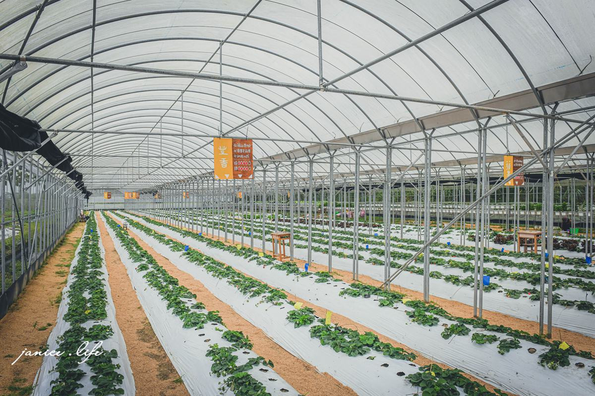 農場採預約制,要來採果可先電話或FB私訊預約。草莓就種在溫室裡,雨天也可以採,更不用擔心濕泥地弄髒鞋褲。走入溫室內,是乾淨的空間,成排鮮紅的草莓讓人垂涎,農場內種有豐香、蘋果、香水、戀香、女王等台灣品種,日本品種則有桃薰、甘王、壢乙女等品種,現場在每一品種區上方都有說明牌,除了介紹品種名,也有註名該品種特色。