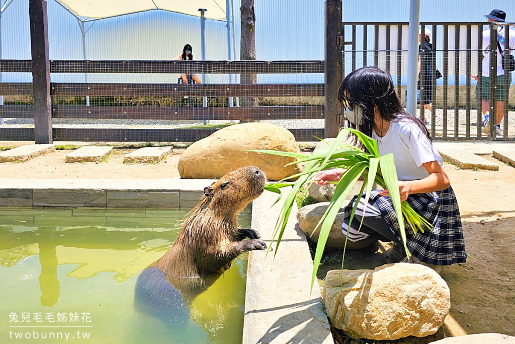 第2區-可愛動物區可以直接走入柵欄內與小動物們互動,有象龜、水豚、小小羊、梅花鹿等動物,小小羊超萌的,讓人忍不住想一直餵牠們。農場出口處有手作市集,展售可愛動物主題日用品,門票可折抵,最後記得去取餐口兌換小點心哦。