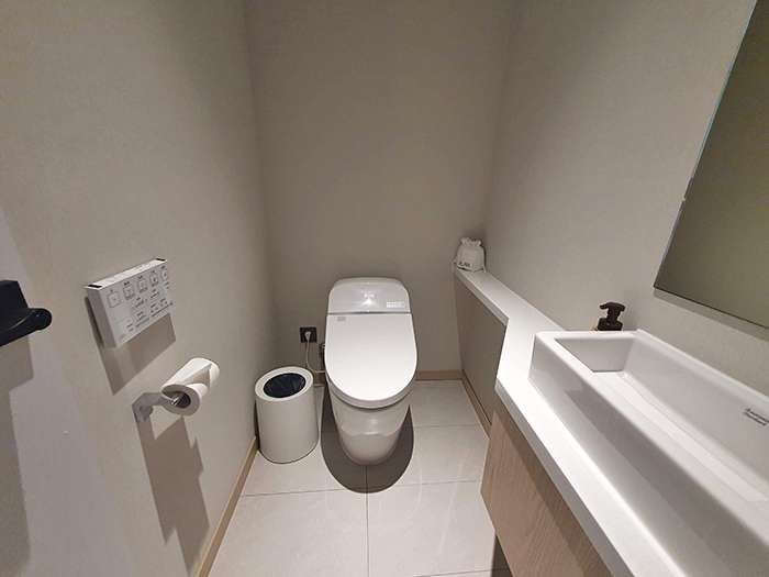 廁所則是獨立一間,並配上高級的TOTO免治馬桶,還有智能判斷有人進來時會自動開啟馬桶蓋。