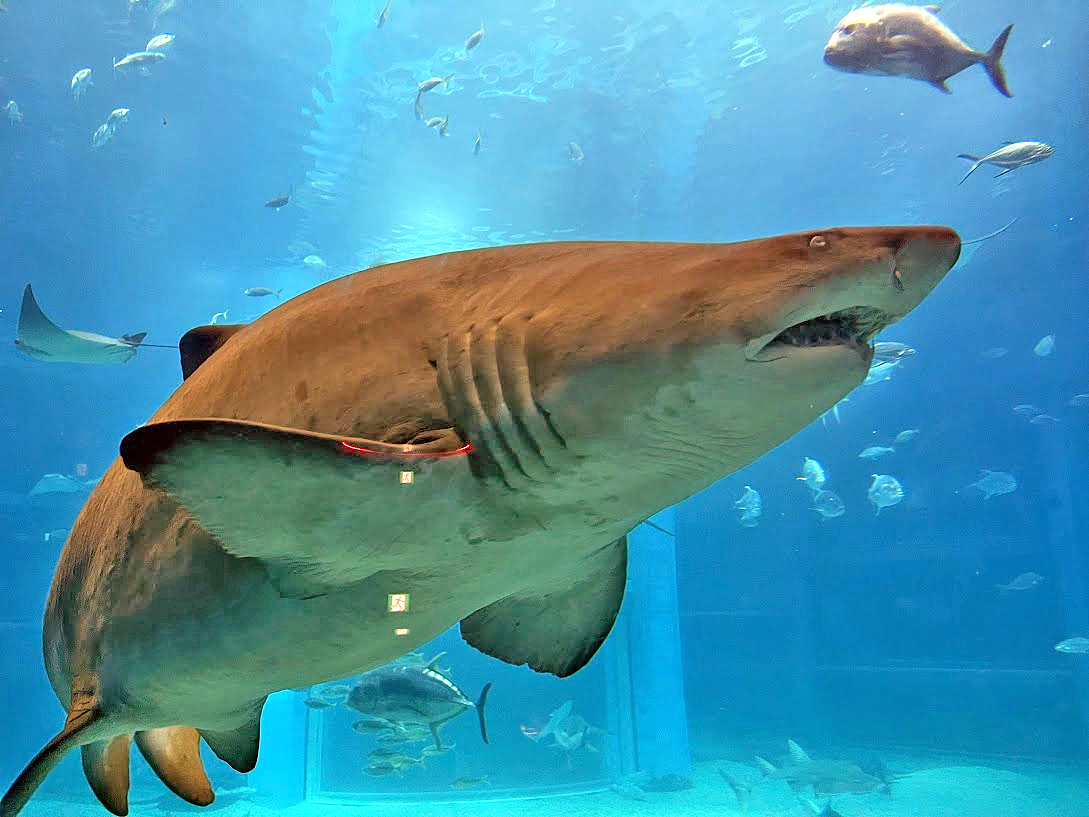 裡面有2隻世界最大魚類-鯨鯊,巨大叉頭燕魟、雙髻鯊、烏翅真鯊、沙虎鯊、翻車魚等多種大型魚類。