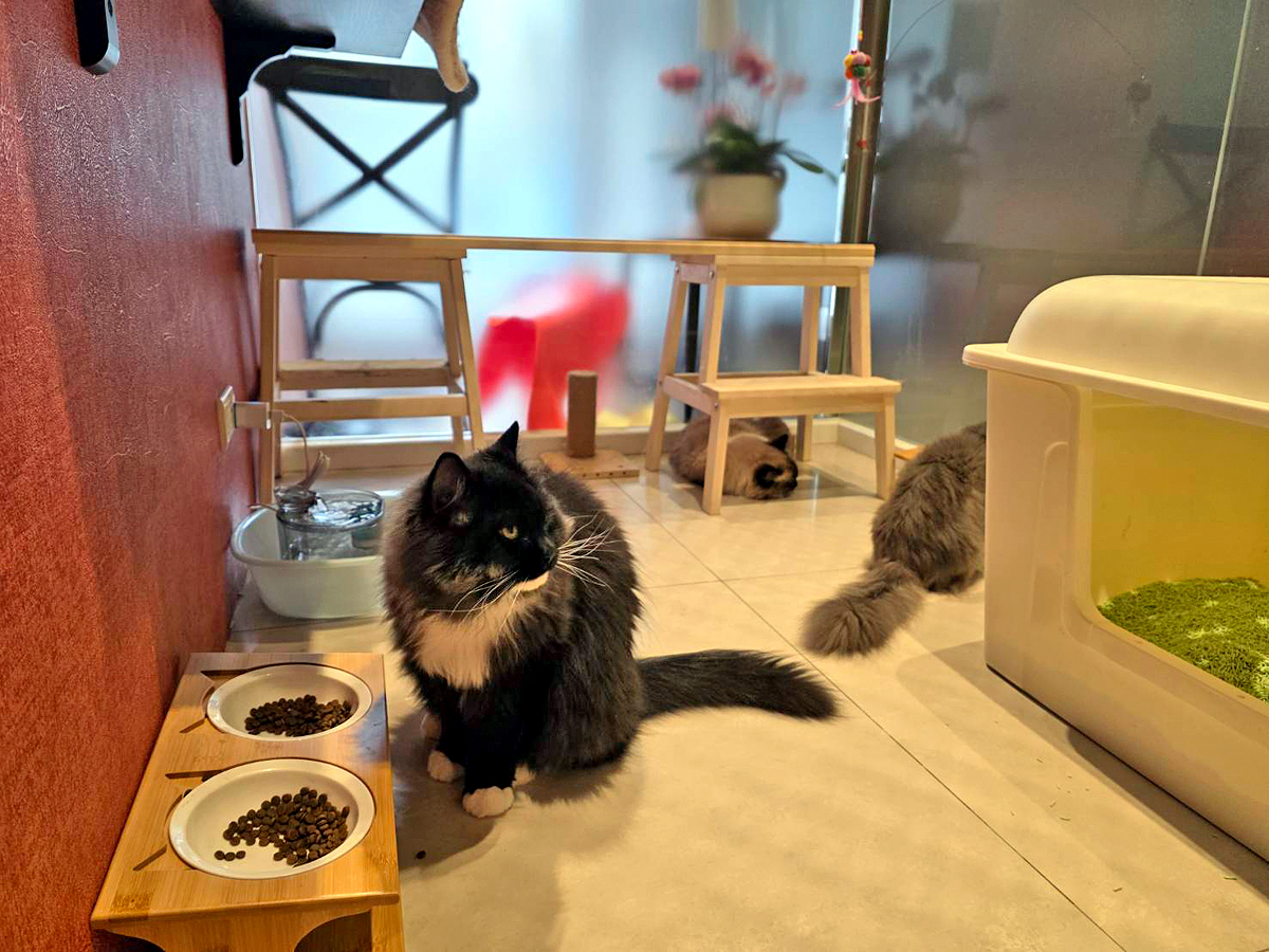 貓咪們自在的在裡面活動或休息,親人的牠們會主動討摸。