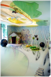 樟樹王國裡有著美麗的3D彩繪,引領大小朋友進入老樟樹的童話世界,利用故事繪本、互動式道具,讓小朋友邊聽邊玩,還有毛毛蟲玩偶、、磁鐵與造型拼圖等玩具。