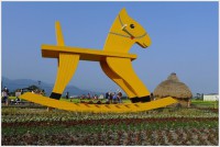 黃色的可愛大木馬,坐落於宜蘭三星的一處田地,而在巨型的洛克馬旁,還提供了幾個小小洛克馬,讓小朋友可親身體驗坐在搖搖馬上的樂趣。