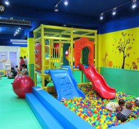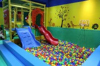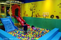 一樓有大型的溜滑梯跟繽紛球池,另一邊則是扮家家酒區︰有小男生喜愛的工具桌跟小女生喜愛的家家酒。最裡面則有益智玩具、積木、拼圖、RODY跳跳馬與動物造型輪車等玩具讓小朋友玩。