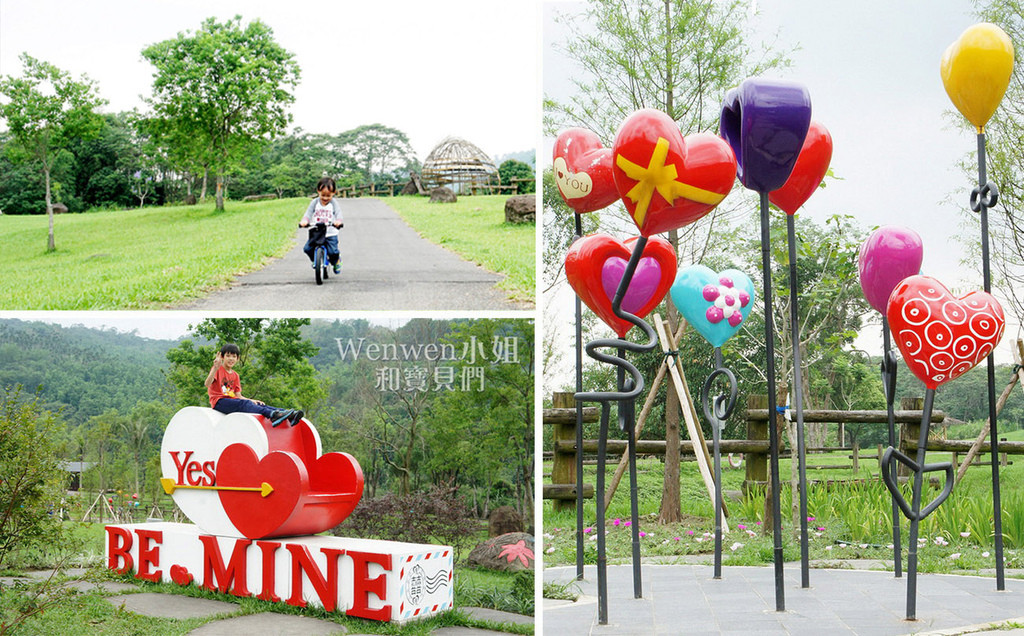 觸口遊客中心附近還有另外3組愛情藝術裝置,包含可騎單車通過的心形花廊,結合囍字設計的「一路有你」等。