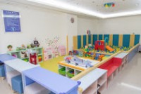 親子館的遊戲設施大概適合5歲以下的小朋友,門口旁有個大致可容納3-4個小朋友的小型決明子沙坑,半開放式的遊戲區鋪設軟墊,有小球池和溜滑梯、娃娃屋、積木、扮家家玩具組、海盜船、多種小車子和軌道車組可玩,還有多種適合0-3-歲小朋友的益智小玩具。具有磁性的牆壁,則可以讓小朋友發揮創意玩拼貼。