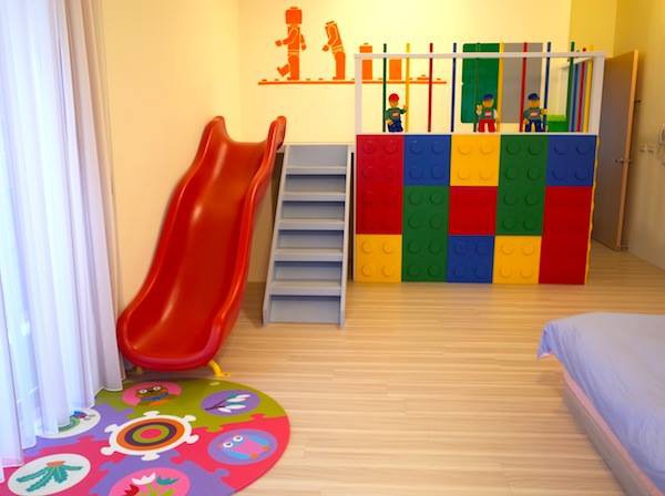除本館有六間特色房,甫開幕的捲捲親子館,還有三間充滿童趣的親子主題房,「Lego Castle樂高房」、「Peekaboo躲貓貓房」及「Sports Fun小小運動家房」,一樓都設有兒童遊戲區,親子房也都有上下層,房內並附有浴缸,讓大人小孩都樂不思蜀。