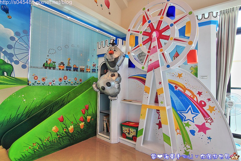 住好運共有五間親子溜滑梯套房,塌塌米日式的「桂花廂」三人房,房內散發著淡淡桂花香,浪漫溫馨;充滿古老神話的「阿拉丁傳奇」五人房,神燈精靈帶來無限驚喜與歡樂;四海為家的「海盜的故事」四人房,碧海青天拋開煩憂;繽紛絢麗的「摩天堡」五人房,感染歡喜愉悅的氛圍;還有動物圍繞的「原野奇遇」三人房,與泰山一同森林冒險吧!每間各有特色,讓人愛不擇手,沈醉在夢想的童話國度中。