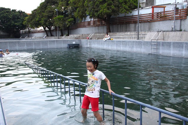 公園內有2個大的泳池,一個比較深,適合大人來游泳。一個比較淺,適合小朋友來玩水。有趣的是,池底是由天然的石頭鋪設的,且在游泳的時候,泳池裡還有魚兒跟小蝦在旁邊一起游。