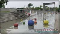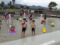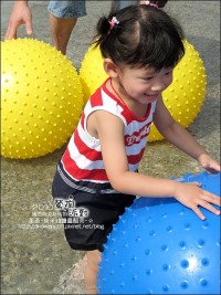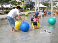 戲水池子不深,很適合小小孩遊玩,水池上方擺放各種色彩與大小的陶瓷球,視覺上繽紛討喜。