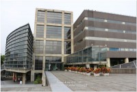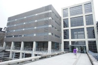 博物館建築採用鐵灰色外牆與大片玻璃打造。