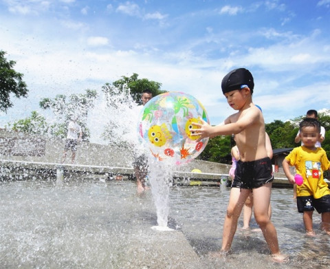 順著動線走會來到「水廣場」,這裡最棒的是有夏季免費戲水池可以讓小朋友玩玩水!