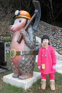 爬上來後,會先看到可愛的礦工小甲(穿山甲),準備帶著你一起去上工。一旁有運煤車,可以讓小朋友進去拍照。