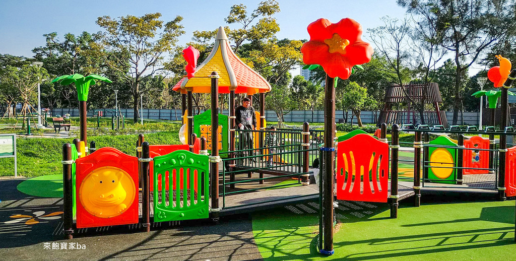 註:公園腹地很大,建議由輜汽路側生態池入口進去,那裡離共融遊戲場最近。