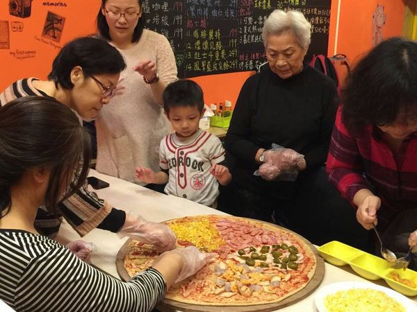 DIY 24吋超大型pizza!小朋友會不會看到呆掉呢(笑)。位於台北大安區的林太太手工石烤pizza,提供pizza DIY活動,這裡的pizza都是9吋的。只要預約人數超過6人,就可以預訂超大pizza哦,全家大小一起努力做pizza。