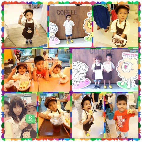 位在台北信義區的Mister donut 甜甜圈東興店,舉辦小小烘焙師甜甜圈DIY活動。DIY內容有1個大的與6個小的甜甜圈,加上DIY裝飾糖果與紅茶1杯。