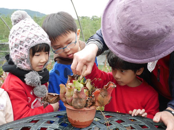 農場也是台灣唯一以雨林為主題的生態農場,這裡有多種食蟲植物,像是可愛圓胖的豬籠草、小巧的毛氈苔、會閉合的捕蠅草...等,導覽人員除了介紹給小朋友認識,也能觸摸體驗。