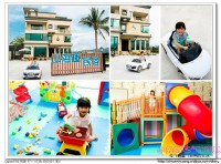 遊戲區有個大旋轉溜滑梯與小小孩溜滑梯、免投幣投籃機、廚房組、搖搖椅、玩具小車與各式玩具,入口處一隻超大布偶熊好吸睛,民宿不停新增玩具,像是兒童超跑多了高鐵與飛機造型,遊戲區也多了變形金鋼可騎乘玩具。