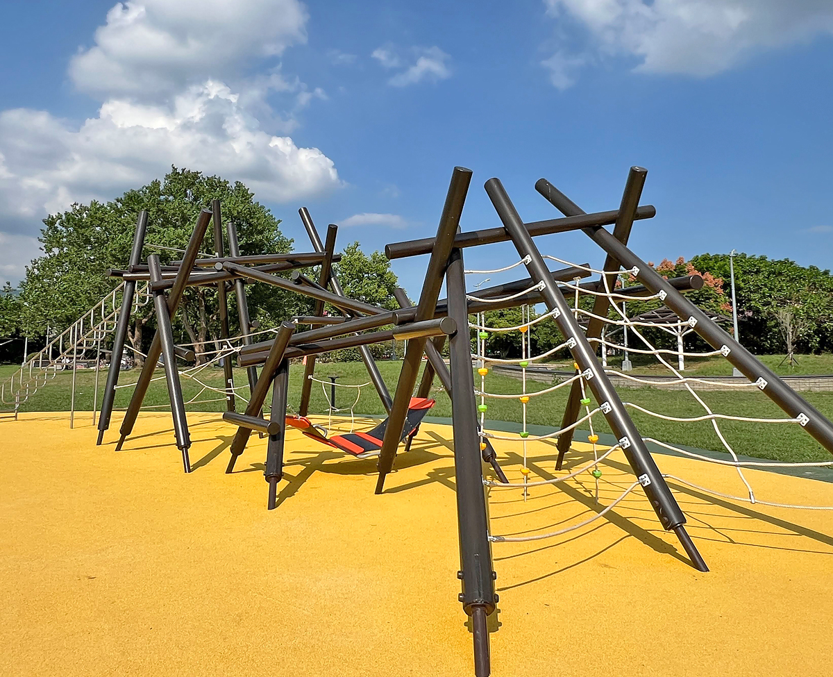 另一側是帶點挑戰性的立體攀爬架,適合小學低年級遊玩。