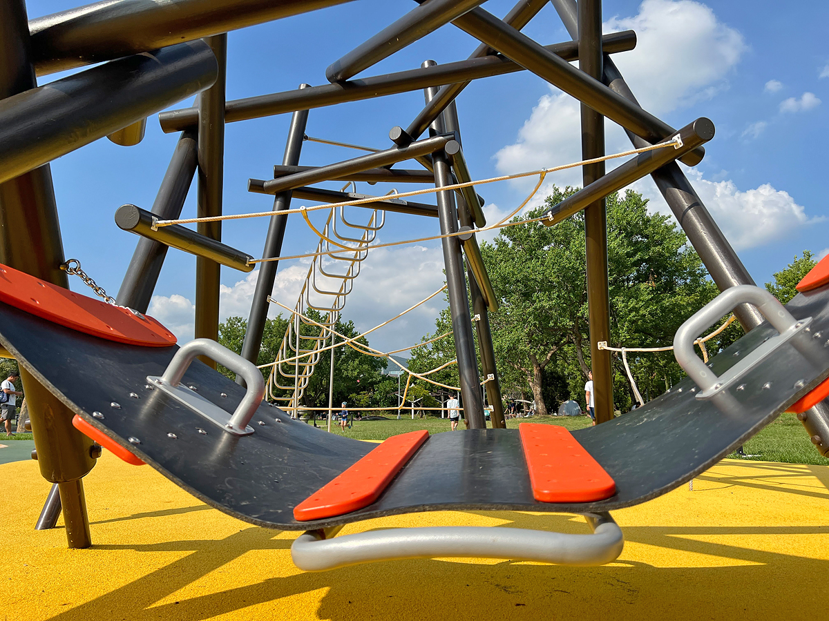 錯綜複雜的攀爬架很挑戰平衡與膽量,最下方還有座吊床可以躺著休息一下。