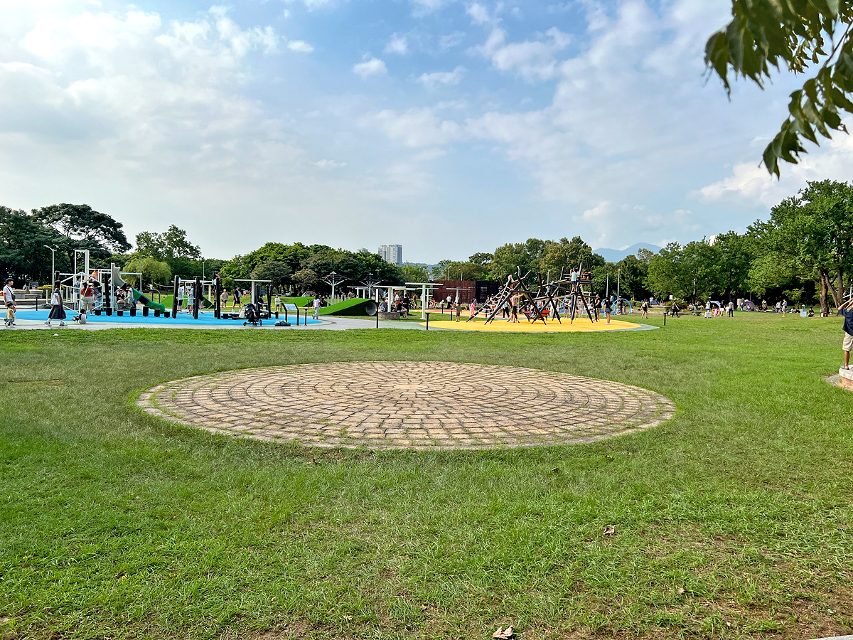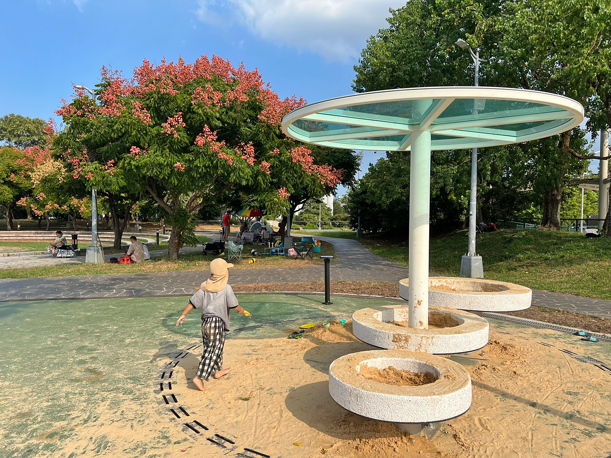 周邊種植不少樹木,許多家庭會在樹下擺放小帳篷或野餐墊,氣氛悠閒舒適。