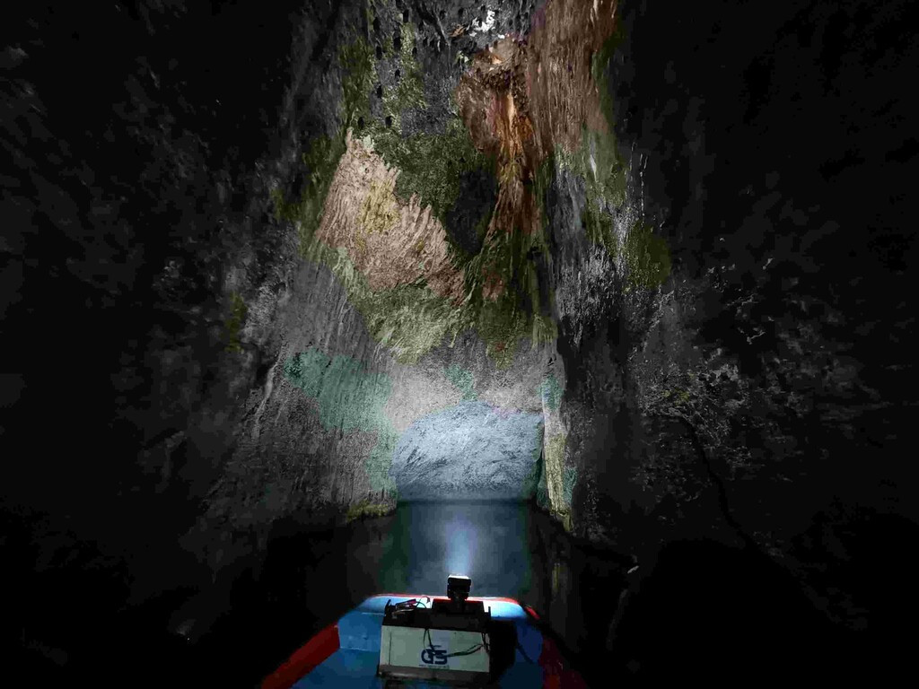 坐小船來到鐘乳石洞穴,天然奇景近...