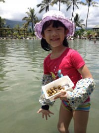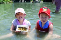 接著就是摸蜆區了,裡面有一座很大的池子,大小朋友們在池子裡認真的尋找摸寶。
