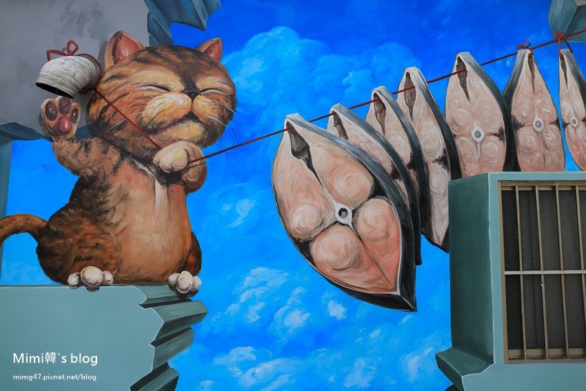 每一個彩繪牆都好逼真,可以餵斑馬吃紅蘿蔔,或是由牆上將紅蘿蔔拔下來。走到轉角,有一個美麗的水族缸與漂亮的海馬。接著看到晒魚干的小貓,還可以偷偷拉下小貓的小褲褲。其他還有羊駝、偷吃魚的老鼠、躍出畫紙的駿馬,張張精彩。